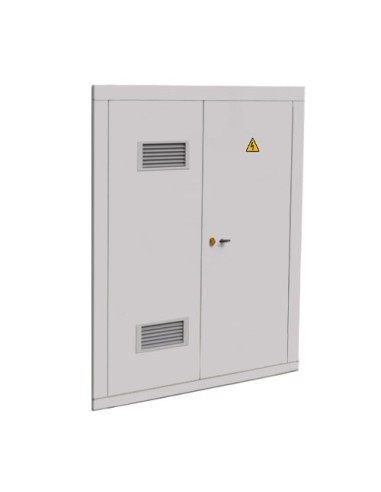 Un frontal con 2 puertas de unas dimensiones totales de 2000x2100mm (AnchoxAlto), con 2 rejillas de ventilación RVA-1931 con auto cierre en caso de incendio, cerradura según compañía eléctrica y una protección al fuego E-30.