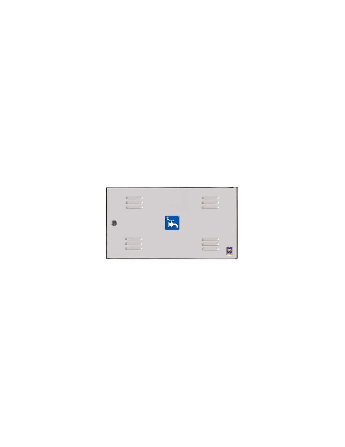 Una puerta metálica de empotrar en exterior, de 1 hoja y con marco en L, para su instalación con contadores de agua y fabricada según Normas particulares de las empresas suministradoras.