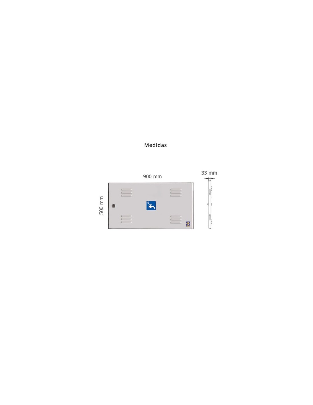 Puerta metálica contador de agua de exterior para hornacina o nicho con unas dimensiones de hueco nicho de 900x500mm (AnchoxAlto) y diámetro contador Ø25-32.
