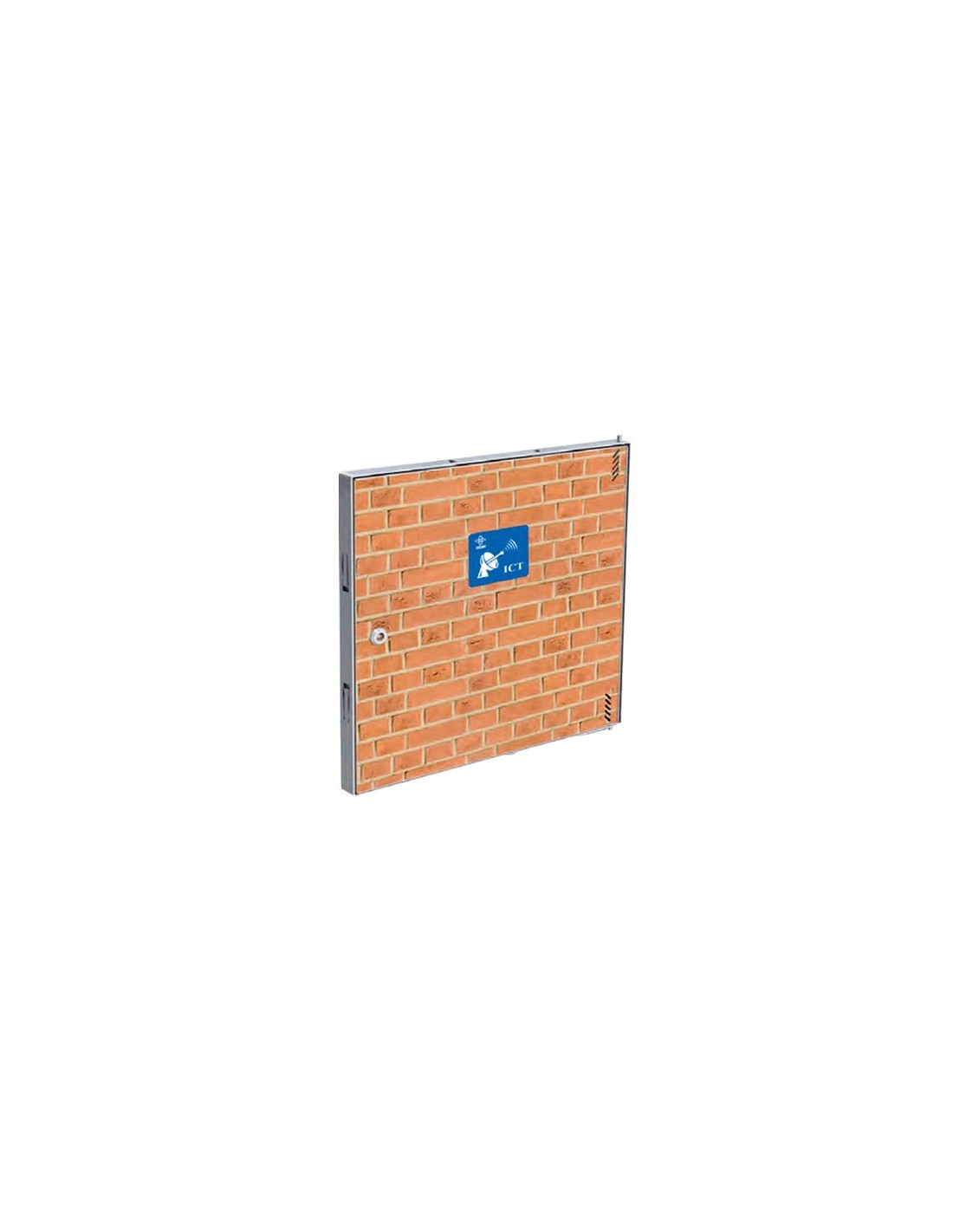 Puerta panelable metálica ICT Telecomunicaciones de empotrar en exterior, con marco en L tipo oculto, y para unas dimensiones de hueco nicho de 500x500mm (AnchoxAlto).