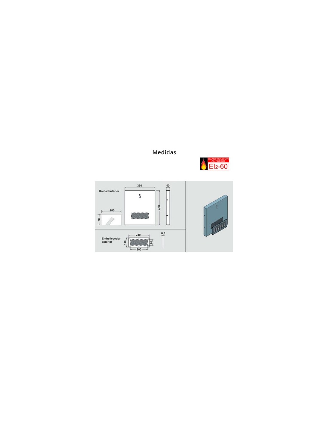 - Medidas del embellecedor exterior: 240x110x0,8mm (AnchoxAltoxFondo).